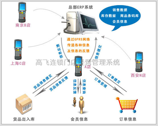 手持終端在連鎖門店經營管理中主要作為一種數據采集及數據交互的工具,通過讀取條碼/RFID標簽的信息,在前臺與后臺數據庫之間進行信息的傳遞與反饋。