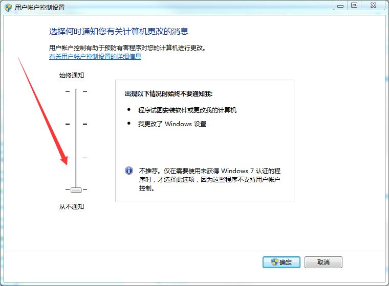 9. 因涉及到(dao)(dao) windows 系(xi)統(tong)安全性,請(qing)修改(gai)更改(gai)用(yong)戶賬戶設置的通知(zhi)級(ji)別到(dao)(dao)最低。