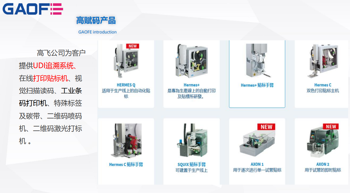 基于國家政策的鼓勵支持和醫療行業現狀,深耕醫療器械UDI解決方案多年的創新者——高賦碼以核心技術與領先工藝整合出了從讀碼、打印、貼標等一系列環節的成熟包裝方案,快速響應多元化的UDI需求。