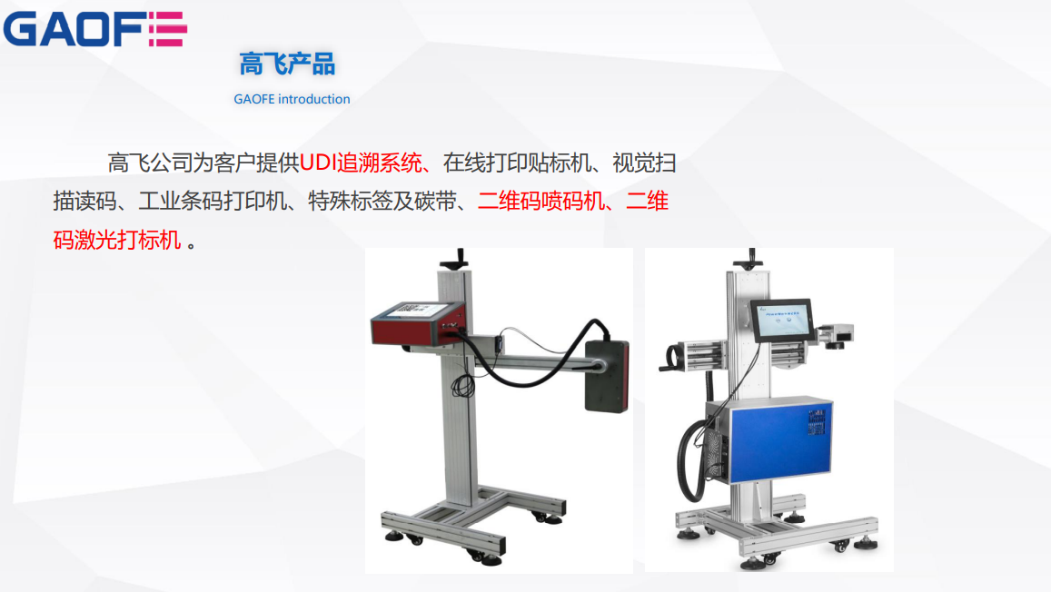 高賦碼噴碼機非常有利于產品識別。通過在產品上標注特殊的標識、品牌名稱和商標圖案等,可以使產品在競爭中脫穎而出,提高品牌的知名度。 產品的批號、班次或生產日期直接印在產品上,使得每一件產品均具良好的可追溯性,大大方便企業的質量管理及產品的區域管理。制造商常可通過對產品的標識預防、抑制假冒,新技術的應用使得那些合法生產廠商能夠一直領先于制假者。在塑料管材上標識商標或生產廠家的名稱意味著一種承諾,消費者通常認為這是一個質量跟蹤比較完善、對產品質量負責的企業的產品。增加了產品的附加值