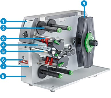 因應不同標(biao)(biao)簽(qian)寬度不需重新(xin)調(diao)整打(da)印頭。針(zhen)對較(jiao)窄(zhai)及較(jiao)薄的標(biao)(biao)簽(qian)配有專(zhuan)用打(da)印滾(gun)軸。