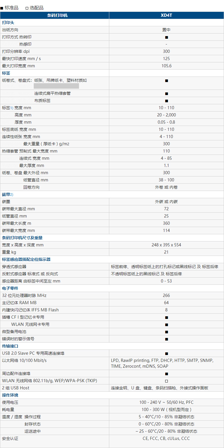 適(shi)用于條碼打印(yin)機 XD4T 的配件