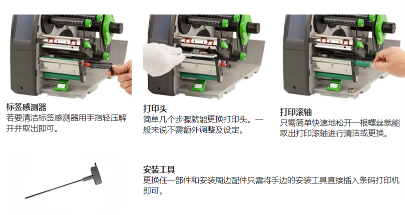 可快速簡易地連(lian)接(jie)(jie)模塊化配件。所有周(zhou)邊配件皆以螺絲固定于兩個(ge)卡榫上(shang)借以連(lian)接(jie)(jie)至條碼打印機(ji)。