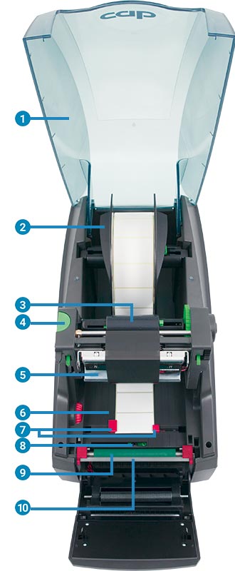 按下(xia)按鈕您可(ke)以大幅(fu)度(du)打(da)(da)開(kai)打(da)(da)印(yin)機(ji)構并深入機(ji)構清潔打(da)(da)印(yin)頭或(huo)輕易更換碳帶。
