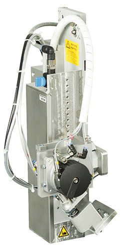 針對脆弱的(de)產(chan)品表面或行進中(zhong)的(de)產(chan)品。標 簽可透(tou)過氣壓噴(pen)射于產(chan)品表面上完成吹 貼動作。可設(she)定(ding)氣缸停止在離(li)產(chan)品表面 5-10mm 之距離(li)。