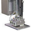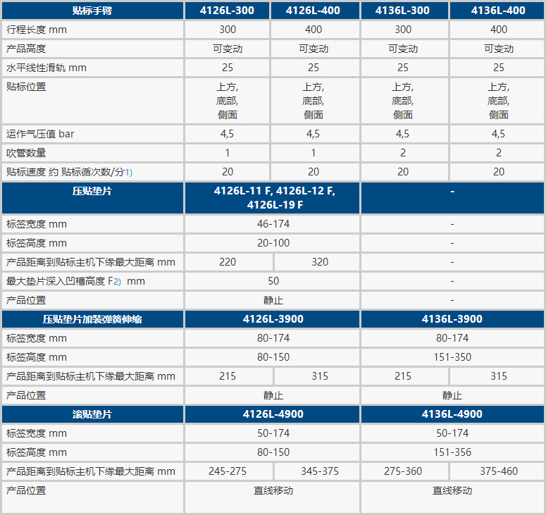 墊片在標(biao)(biao)(biao)簽(qian)(qian)剝離板(ban)(ban)前(qian)就(jiu)會(hui)(hui)(hui)定位。標(biao)(biao)(biao)簽(qian)(qian)在打印同時(shi)就(jiu)會(hui)(hui)(hui)由墊片所吸附。氣缸(gang)會(hui)(hui)(hui)將標(biao)(biao)(biao)簽(qian)(qian)放置于(yu)(yu)產品上(shang)。短距旋轉氣缸(gang)會(hui)(hui)(hui)水平移動(dong)到貼標(biao)(biao)(biao)位置上(shang)并放置標(biao)(biao)(biao)簽(qian)(qian)于(yu)(yu)產品上(shang)。氣缸(gang)行(xing)程長度取(qu)決于(yu)(yu)標(biao)(biao)(biao)簽(qian)(qian)剝離板(ban)(ban)至(zhi)產品的最大距離。