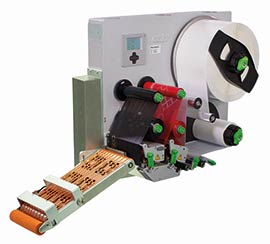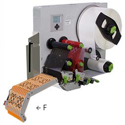 吸(xi)附(fu)式輸送(song)帶貼標手(shou)臂位于剝離(li)板前(qian)。打(da)印完成的標簽會(hui)藉由(you)吸(xi)附(fu)式輸送(song)帶傳(chuan)送(song)至剝離(li)位置(zhi)并透過外部信號貼標于包(bao)裝(zhuang)上。在剝離(li)過程中可同時打(da)印下一張標簽。