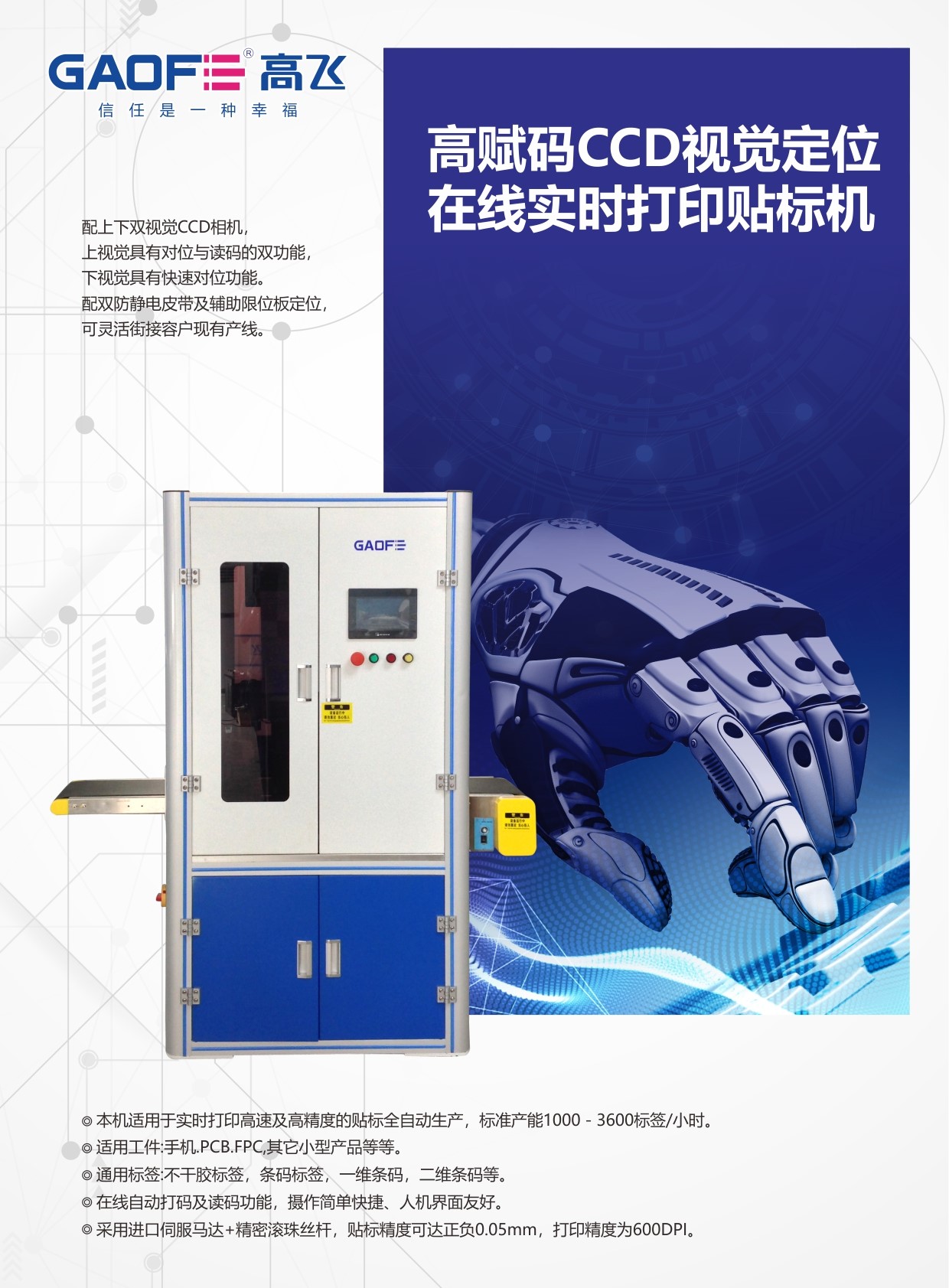 配上下(xia)雙(shuang)視(shi)(shi)覺CCD視(shi)(shi)覺,上視(shi)(shi)覺具(ju)有(you)對(dui)位(wei)與讀碼的雙(shuang)功能.下(xia)視(shi)(shi)覺具(ju)有(you)快(kuai)速對(dui)位(wei)功能。