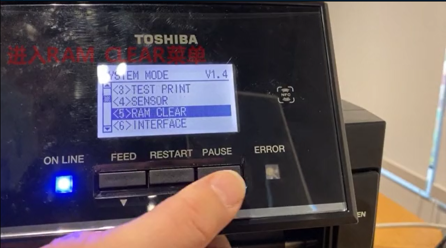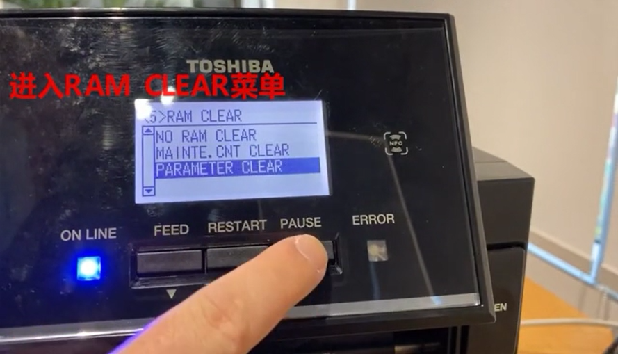 2.按FEED鍵或者PRESTART鍵找到RAM CLEAR——按PAUSE鍵確認進入設置。